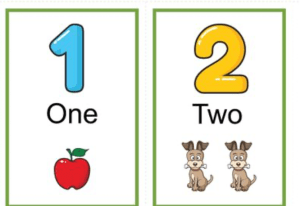 Children typically start with the bedrock of math — numbers! They will learn number names and how to write numbers, typically beginning with 1-10.