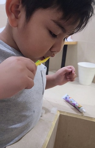 - Minta anak untuk mengikuti gerakan menggosok gigi.