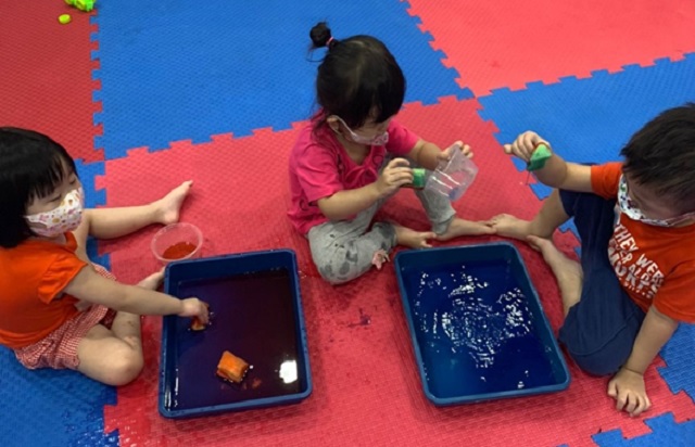 Kegiatan transferring water atau memindahkan air adalah salah satu kegiatan sederhana yang dapat melatih kemampuan perabaan. Kegiatan ini dapat membantu anak mengontrol gerakan dan genggaman tangan serta jari-jemarinya. Memindahkan air dengan spons dapat membantu mengembangkan kemampuan motorik halus pada anak. Aktivitas sederhana ini dapat dilakukan di rumah karena alat dan bahan yang digunakan mudah ditemui di rumah.